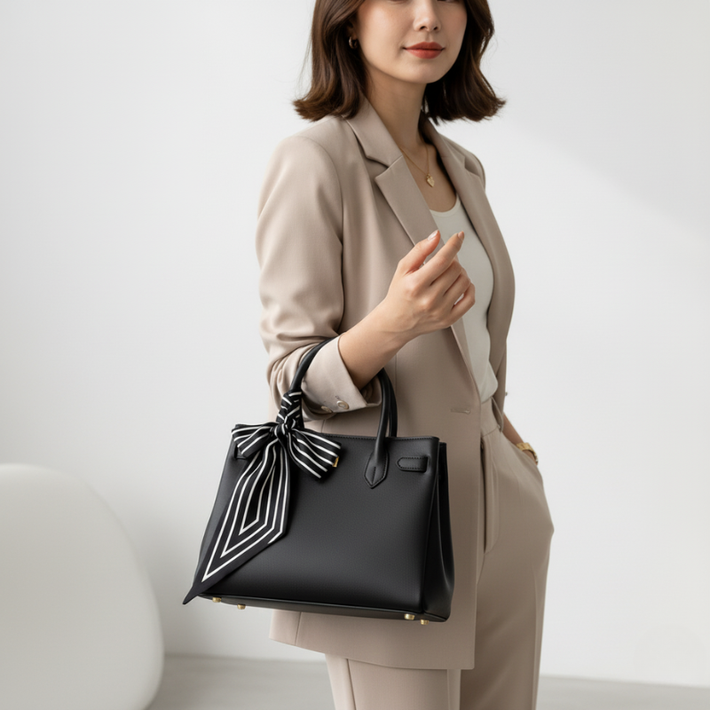 Black and White Ribbon Bag Scarf