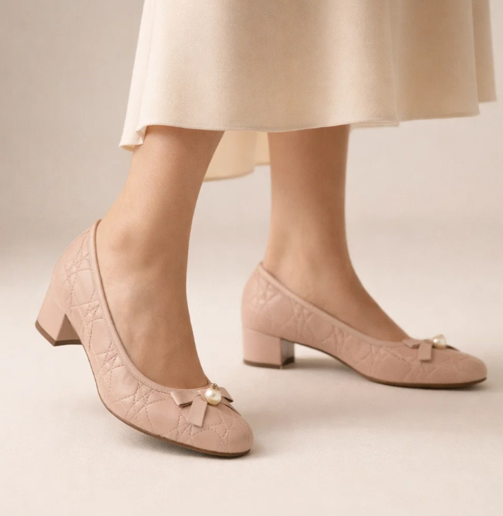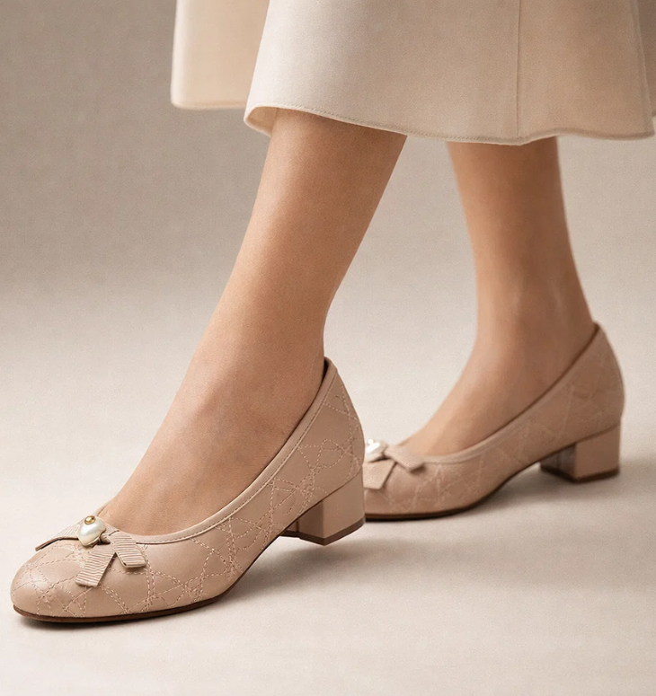 The Bow Diamond Round Toe Chunky Pumps feature a stylish high bow detail combined with a diamond-pattern design, creating an elegant and fashionable look. The round toe offers comfort, while the chunky heel provides stability for everyday wear.