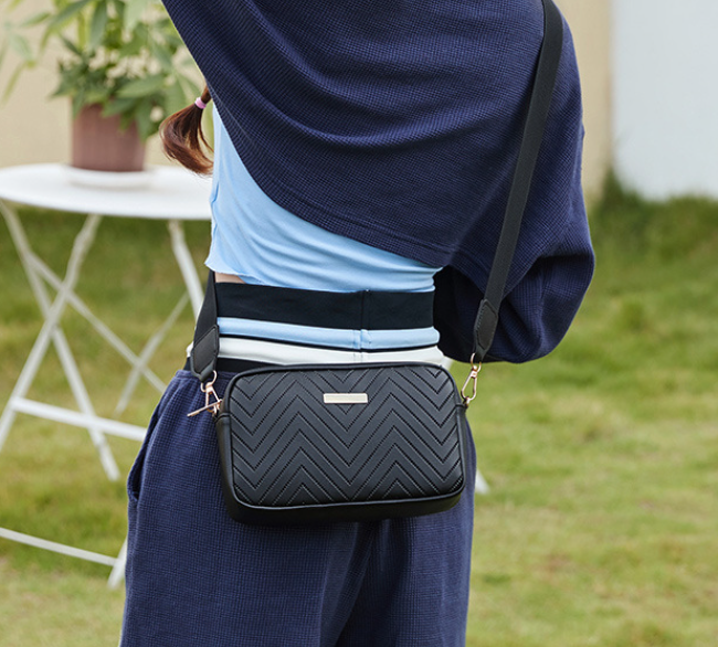 Crafted with precision and attention to detail, this crossbody bag ensures you step out with both style and convenience. The chevron pattern not only adds a trendy touch but also reflects a commitment to quality craftsmanship, creating a bag that effortlessly combines fashion with practicality.