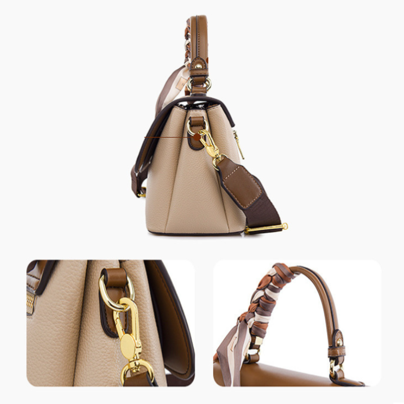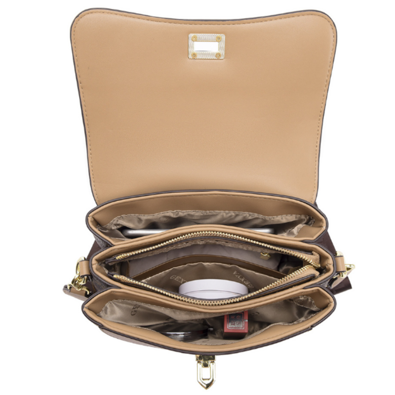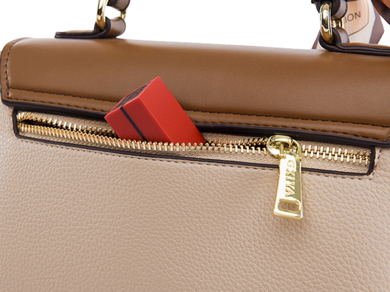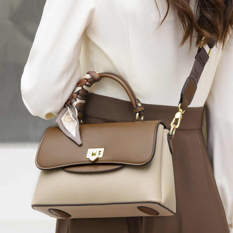 Elevate your everyday style with Chic Serenity Convertible Handbag, a perfect blend of sophisticated design and practical elegance. This exquisite bag features a captivating two-tone palette, pairing a rich, warm brown flap with a soft, complementary beige body, creating a look that's both classic and contemporary.