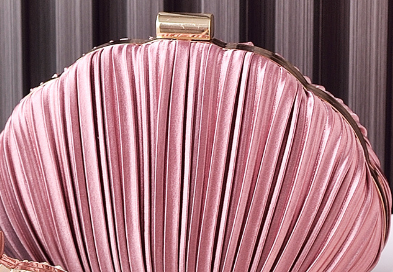 These delightful clutches feature elegant, finely ruched satin in an array of soft, enchanting colors, creating a beautiful fan-like texture. Each bag is framed with subtle gold accents and a classic kiss-lock clasp, offering timeless sophistication. Perfect for adding a vibrant yet refined touch to any evening ensemble, these clutches are versatile accessories for weddings, proms, or special celebrations.