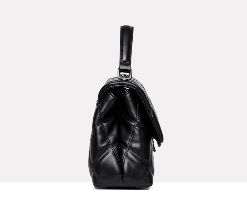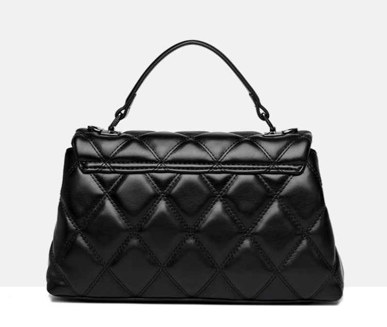 This sophisticated women's bag combines timeless elegance with modern design. Crafted from high-quality faux leather, it features a luxurious diamond-quilted pattern across the flap and body. The sleek black exterior is complemented by a contemporary rectangular push-lock closure. It offers versatile carrying options with a comfortable top handle for handbag style and a detachable, adjustable long strap for shoulder or crossbody wear. Perfect for adding a touch of classic chic to any outfit, from daily errands to evening events.