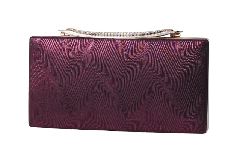 Elevate your evening look with our exquisite Shimmering Hardcase Clutch. Crafted with a sophisticated textured finish that catches the light beautifully, this clutch features a dazzling rhinestone-encrusted handle, adding a touch of glamour to any outfit. Available in a stunning array of colors to perfectly complement your style, this clutch is an ideal accessory for weddings, parties, galas, and special occasions. Make a statement and sparkle wherever you go.