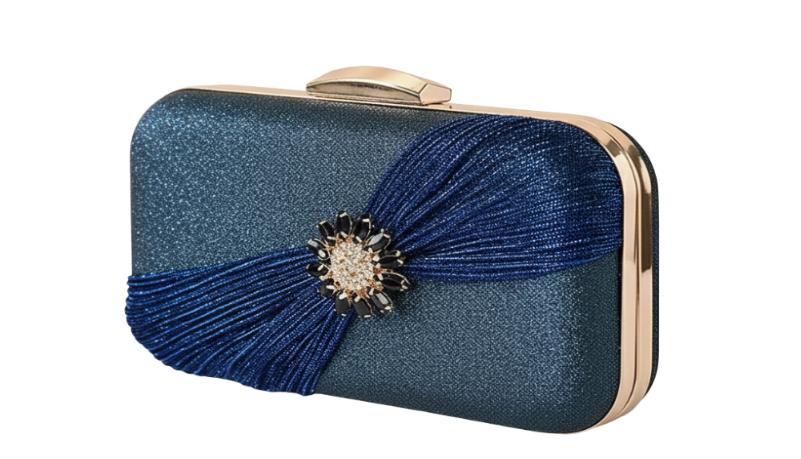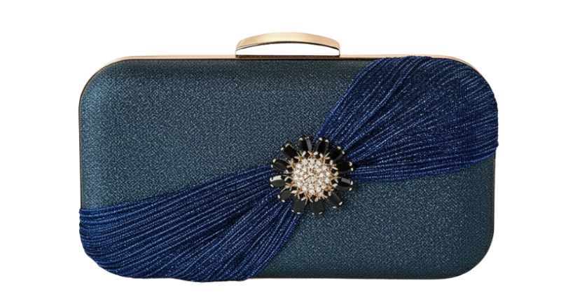 These dazzling clutches feature a vibrant glitter-infused body, elegantly adorned with a soft, draped tulle accent gathered by a captivating starburst jewel. Each bag is designed with a sleek top clasp and a delicate chain strap, offering versatile styling options. Perfect for adding a festive and glamorous touch to any evening ensemble, they are sure to sparkle at weddings, proms, or special celebrations.