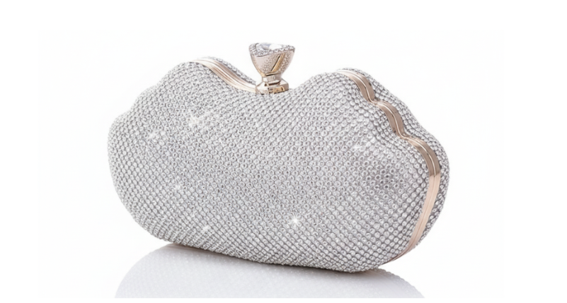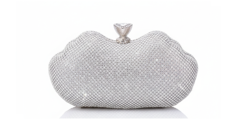 These exquisite clutches boast a unique, elegant cloud or petal-shaped silhouette, entirely encrusted with dazzling rhinestones that catch the light beautifully. Each features a stunning crystal-encrusted kiss-lock clasp, adding an extra touch of brilliant glamour. Available in versatile metallic tones, they are the ultimate accessory for making a radiant statement at weddings, galas, or any upscale evening event.