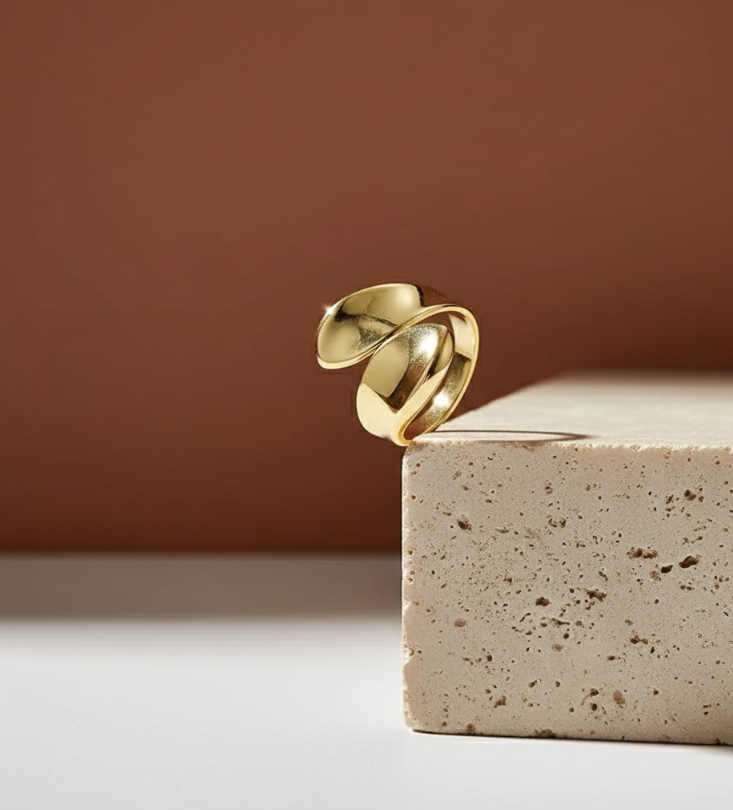 The Glossy Geometric Open Ring features a modern irregular geometric design with a smooth, glossy finish. Its open-ring structure adds a contemporary touch while allowing a comfortable and flexible fit.
