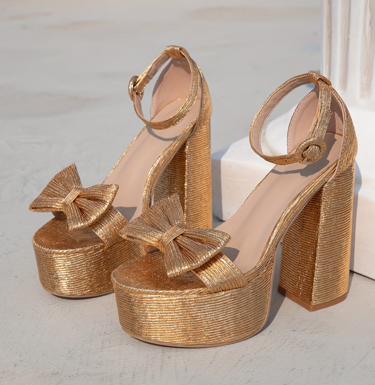 Gold Bow Buckle Party High Heels