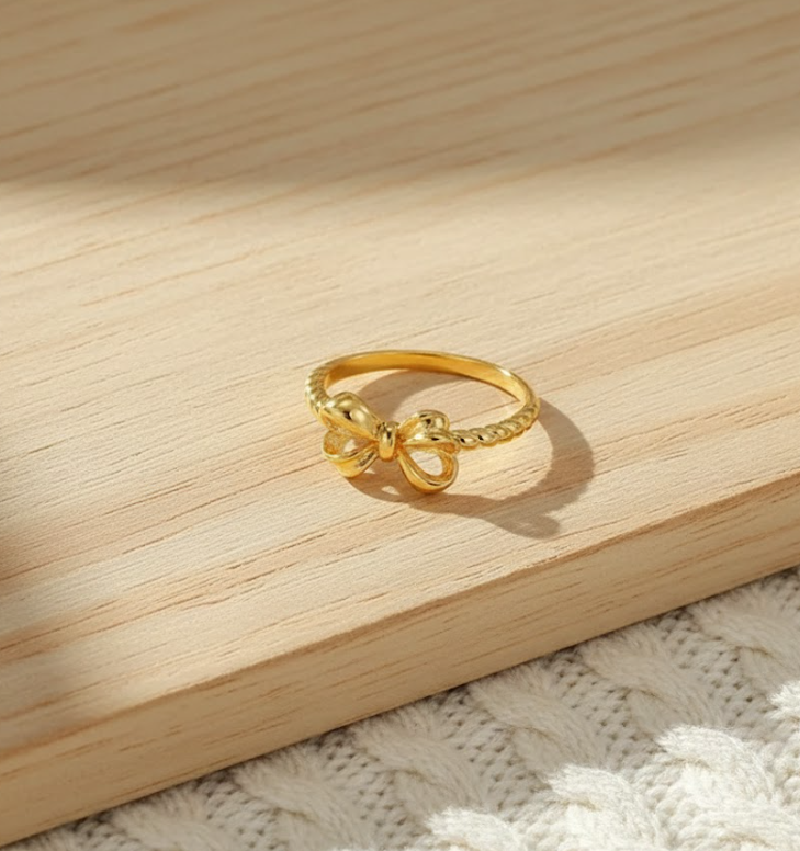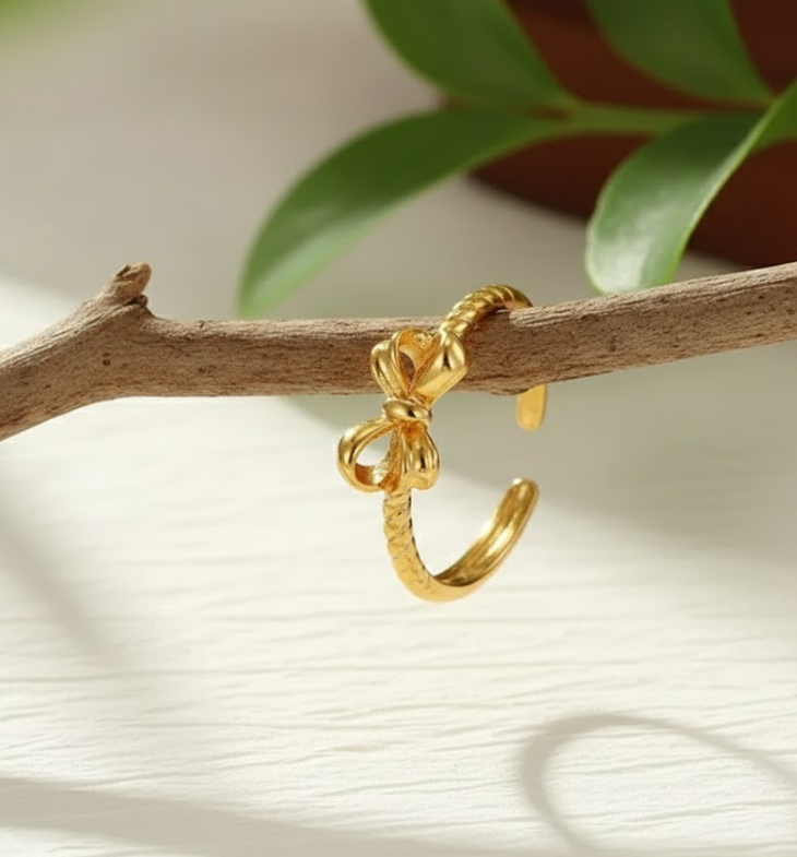 The Gold-Plated Gentle Bow Light Luxury Ring features an elegant bow design crafted from high-quality copper alloy with a radiant gold-plated finish. Lightweight and stylish, this ring offers a delicate, feminine touch, making it perfect for daily wear, special occasions, or gifting. Its minimalist yet luxurious aesthetic adds sophistication and charm, ideal for women who appreciate refined, fashionable, and light-luxury jewelry.