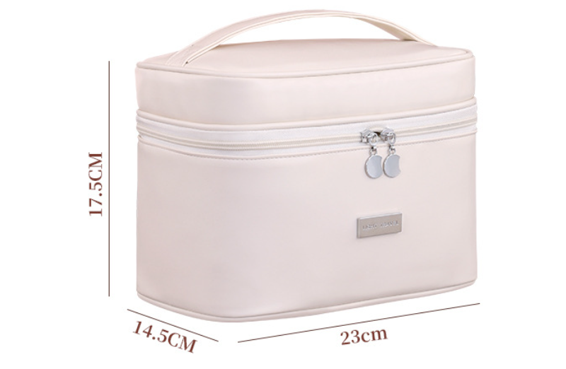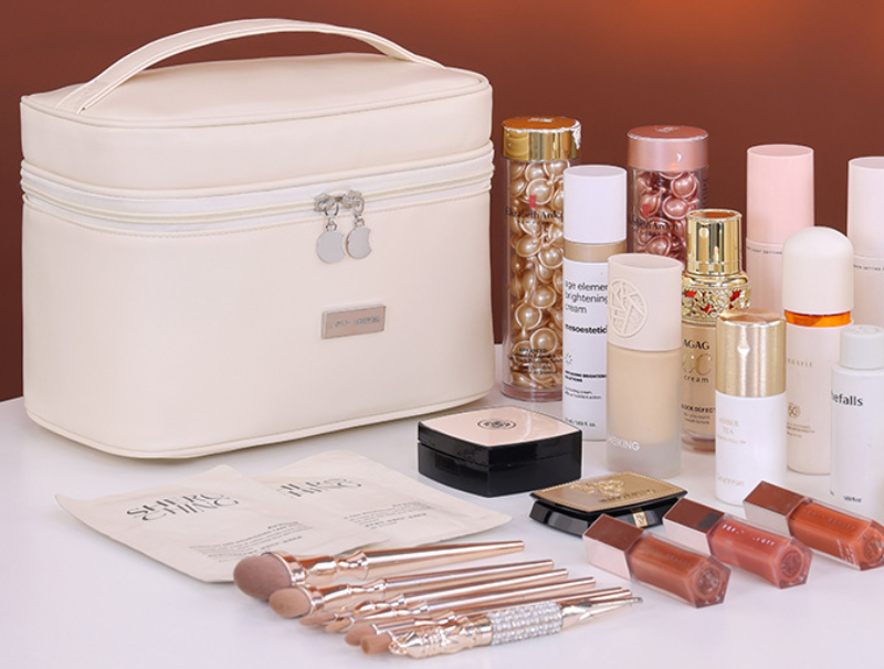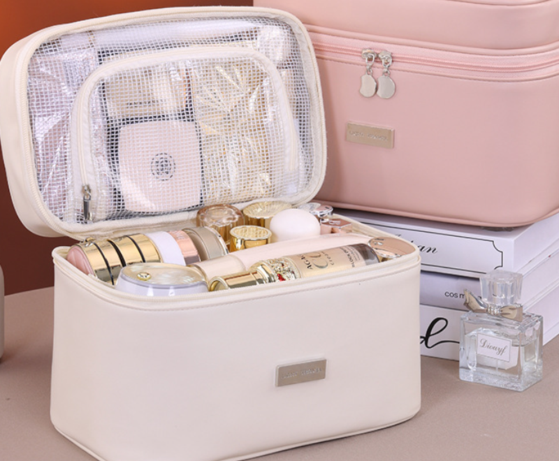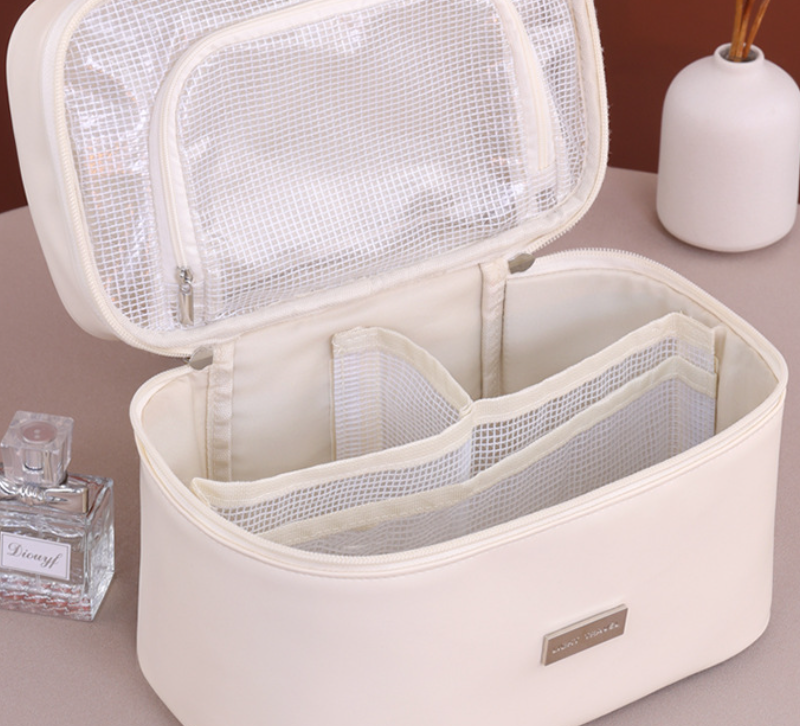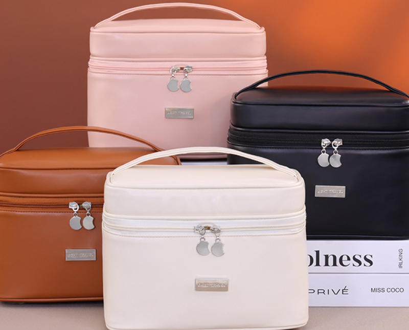 Elevate your travel and daily organization with our elegantly designed cosmetic bag, a testament to classic style and practical luxury. Crafted from premium textured material, it offers a refined look that complements any aesthetic. The spacious interior, secured by a smooth, contrasting zipper, provides ample room for your beauty essentials while maintaining a sleek silhouette. Perfect for the discerning individual, this durable and stylish bag is your ideal companion for keeping cosmetics organized with effortless sophistication.