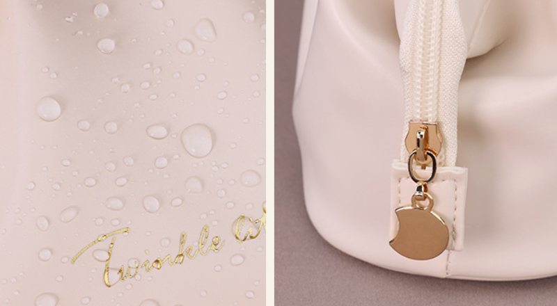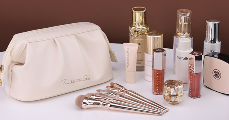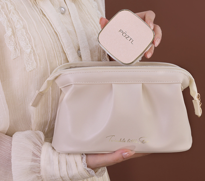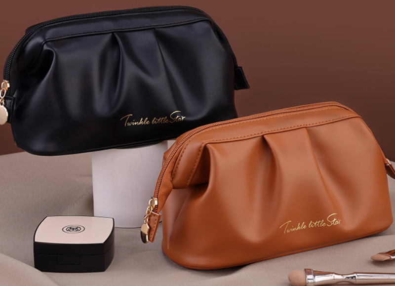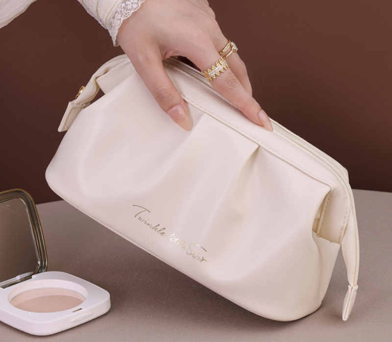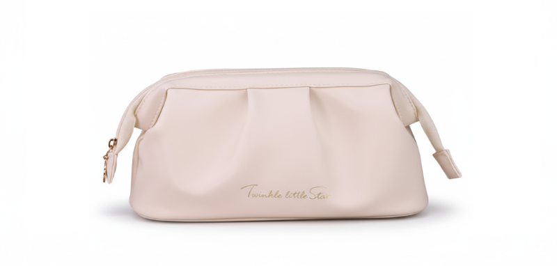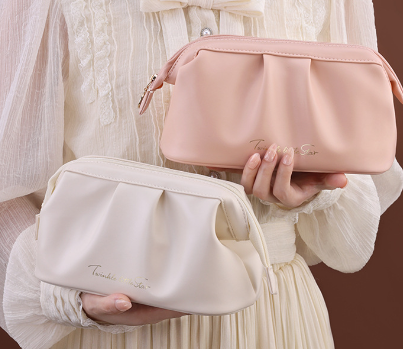 Carry your beauty essentials with a touch of elegance in our beautifully pleated cosmetic pouch, designed for the modern and sophisticated individual. Crafted from a soft, supple material with delicate ruching, it offers a luxurious feel and a charming aesthetic. Its compact yet surprisingly spacious interior is perfect for organizing daily makeup, small accessories, or personal items with refined grace.