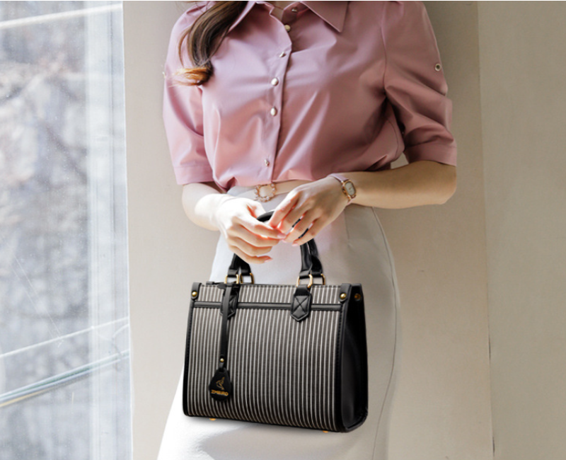 Urban Edge Striped Structured Women's Fashion Handbag